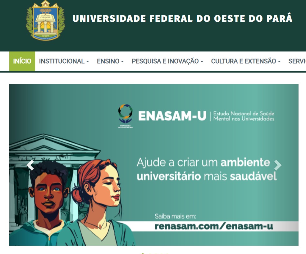O Brasil iniciou em 2025, de forma inédita, o seu primeiro Estudo Nacional de Saúde Mental nas Universidades (Enasam-U). Neste mês, a pesquisa acontece na região norte do país, na Universidade Federal do Oeste do Pará (Ufopa). O estudo abrange estudantes e servidores de 50 universidades públicas de todo o Brasil, com idades entre 18 e 75 anos, e tem como lema “Por uma comunidade acadêmica saudável”.