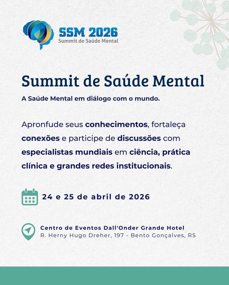 O Summit em Saúde Mental 2026 será realizado nos dias 24 e 25 de abril, em Bento Gonçalves (RS), reunindo cerca de 1.200 participantes entre pesquisadores, profissionais da saúde, gestores e estudantes. Em sua primeira edição, o evento propõe uma programação científica de alto nível, com palestrantes nacionais e internacionais, foco em evidências científicas e forte articulação institucional, incluindo ampla participação da Renasam.
